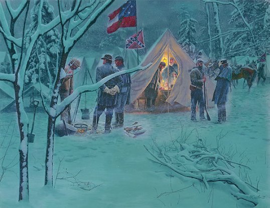 (Painting: The Christmas After Fredericksburg, Civil War Christmas Album, Philip Van Doren, editor, Hawthorne Books, 1961, page 23)